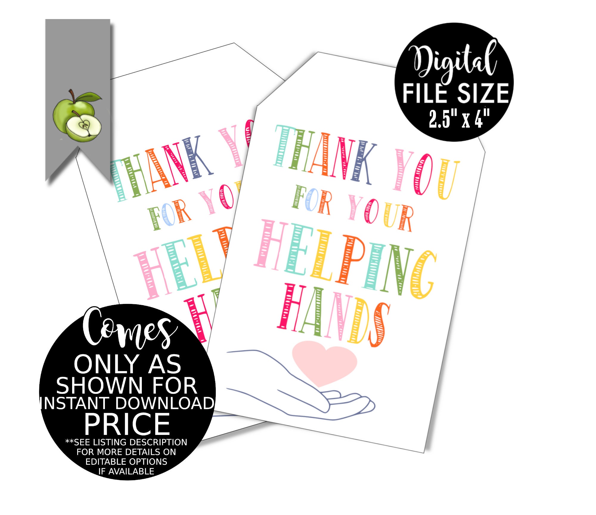 Thank You For Your Helping Hands Volunteer Appreciation Etsy